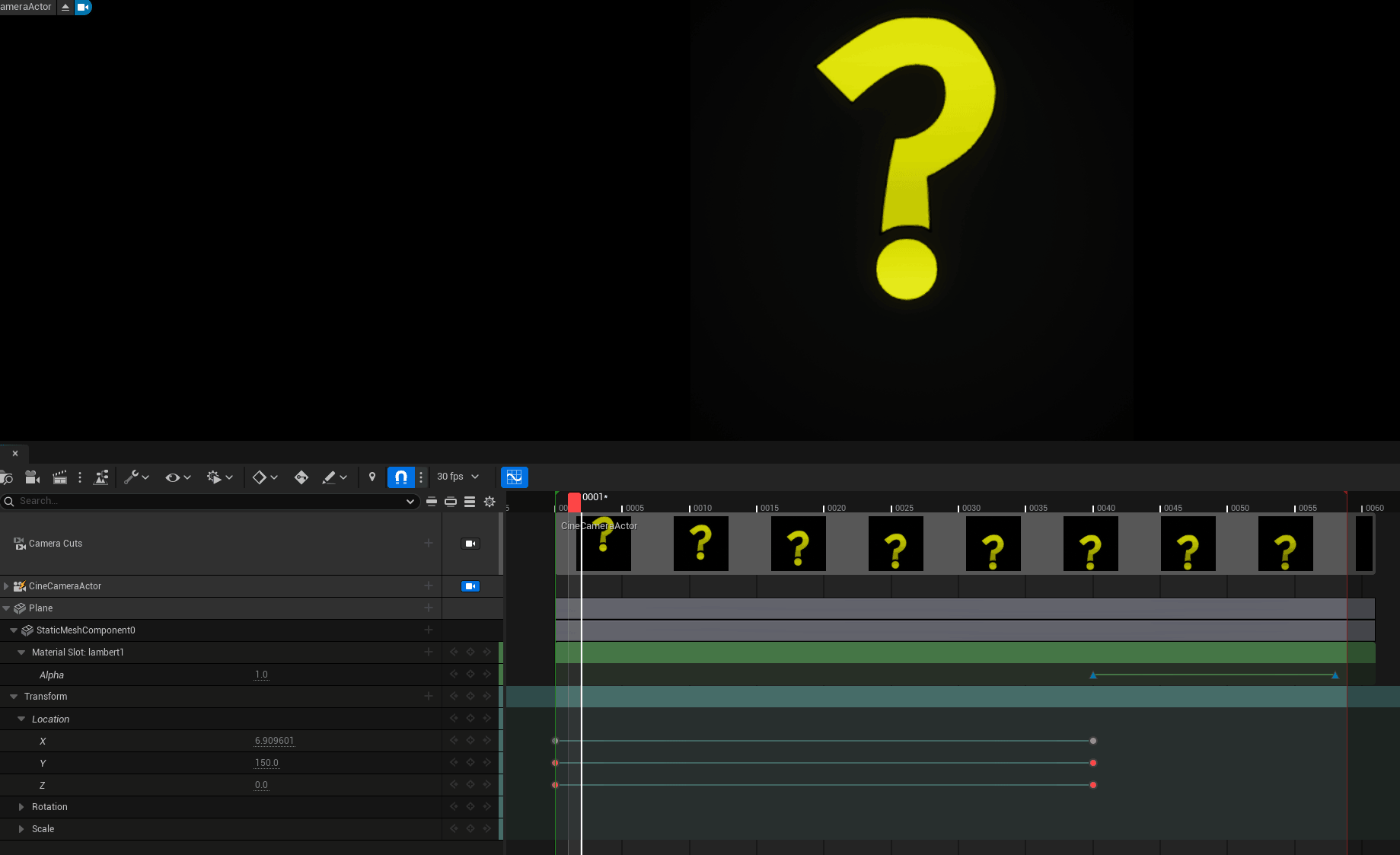 Now the graphic can be animated via keyframes in the Sequencer. Material properties can also be keyframed, which is how a fade effect can be achieved. The Sequencer has a curve editor too, for finer control over keyframe interpolation.